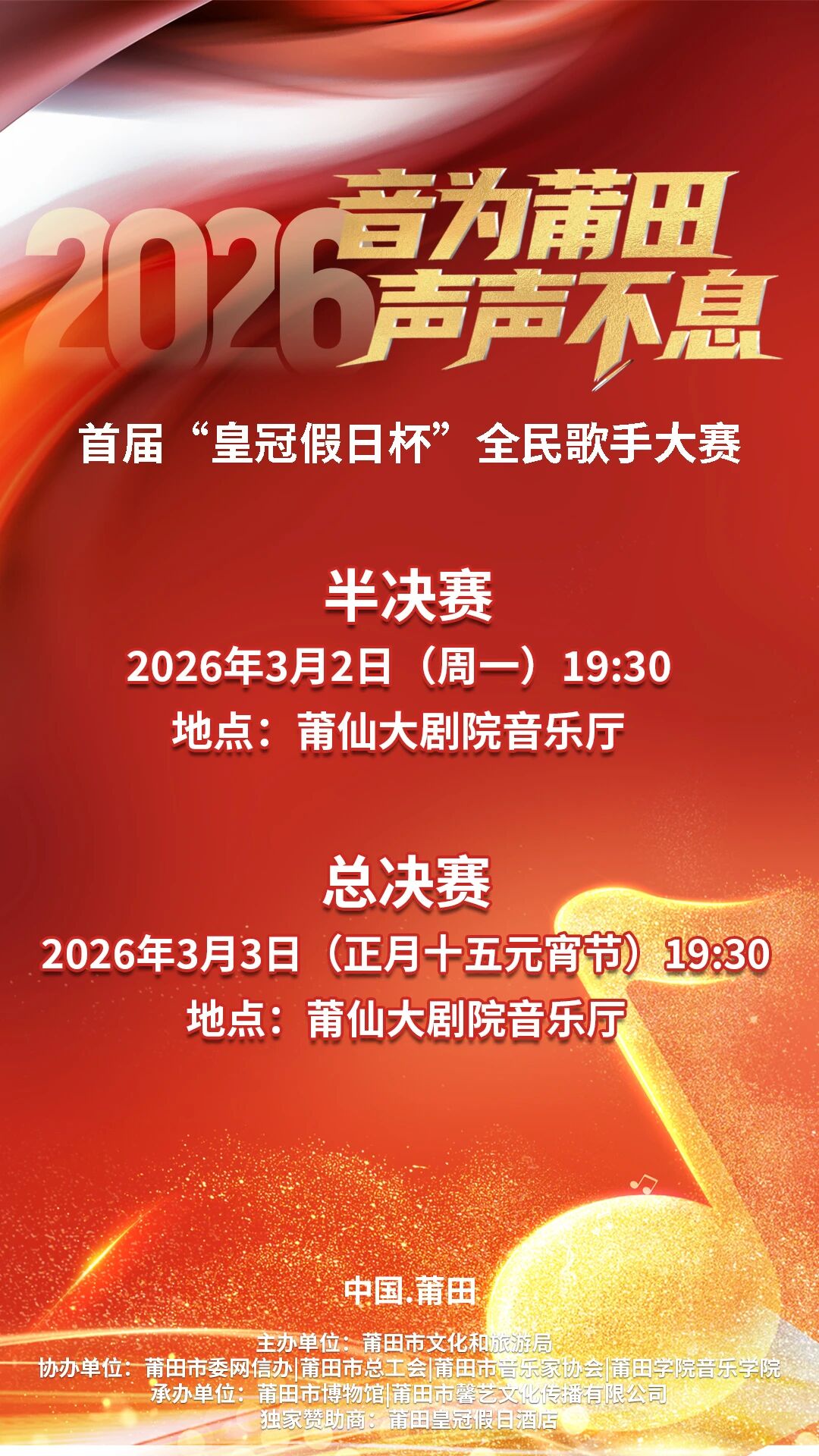 “音为莆田 声声不息”首届“皇冠假日杯”全民歌手大赛圆满收官